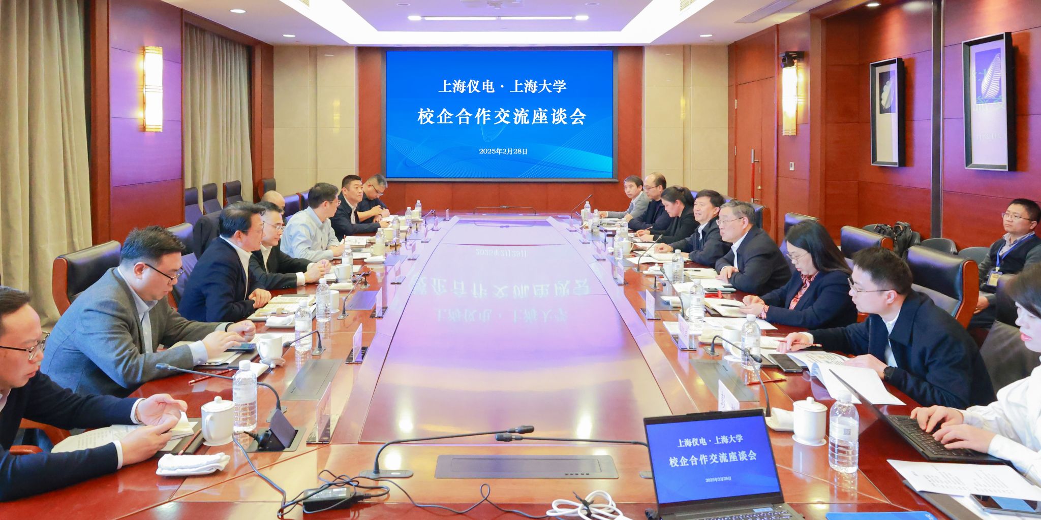 2月28日,国产亚洲精品美女久久久与上海仪电(集团)有限公司校企合作交流座谈会在宝山校区乐乎新楼召开。上海仪电党委书记、董事长毛辰,党委副书记、总裁张建明,党委委员、副总裁黄金刚,副总裁刘山泉,校党委书记成旦红,校党委副书记、校长刘昌胜,副校长张建华出席会议。会议由刘昌胜主持。